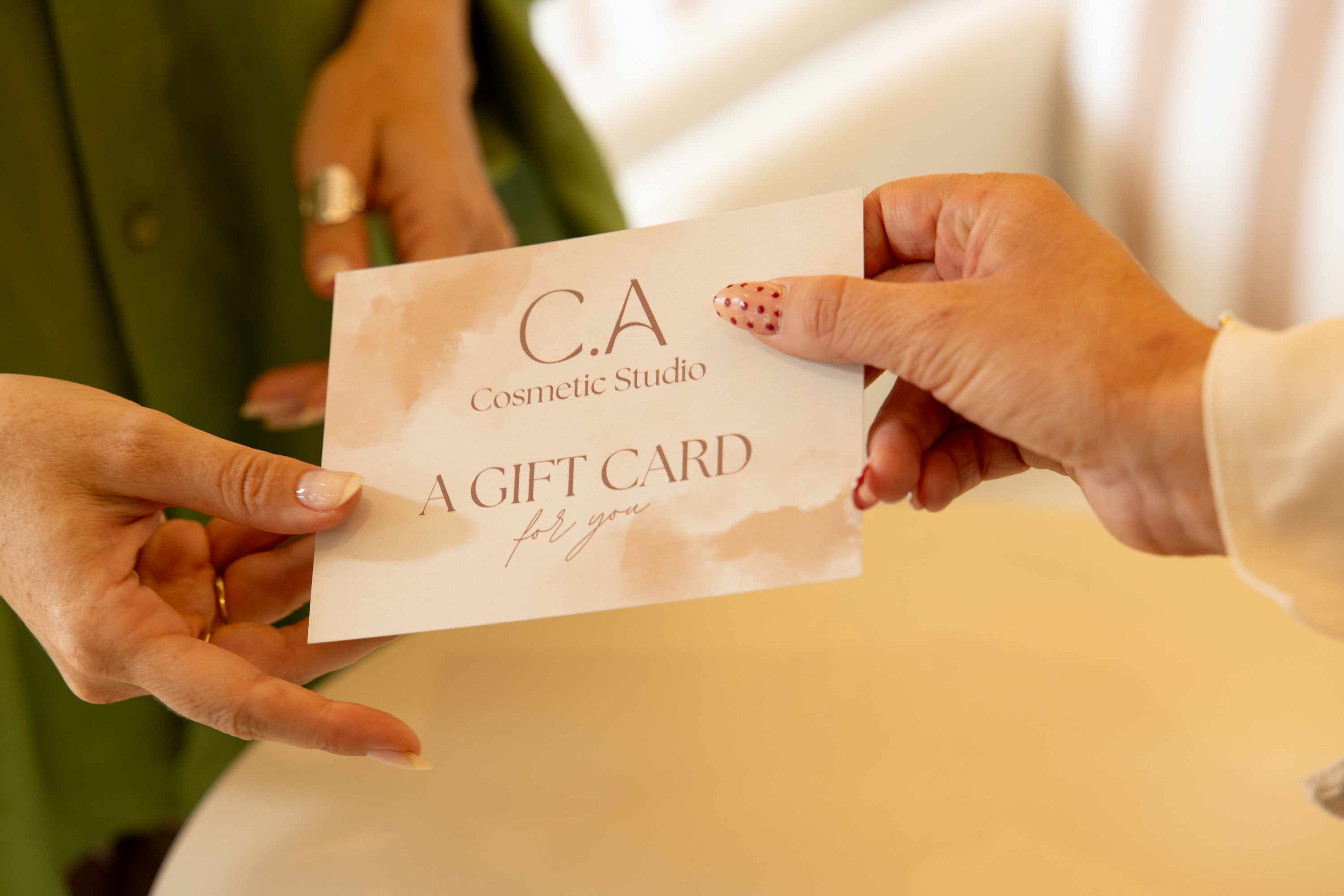 The perfect gift for someone special. A CA Cosmetics gift card offers a personalised aesthetic experience, allowing them to enjoy the treatment of their choice.